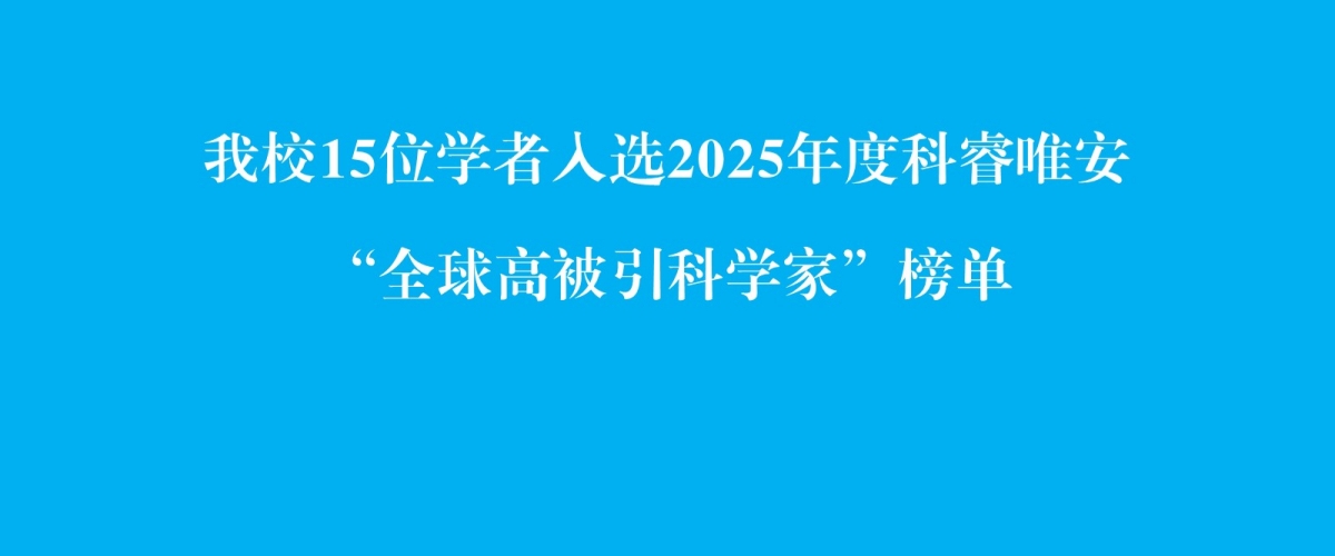 我校15位学者入选2025年度科睿唯安“全球高被引科学家”榜单