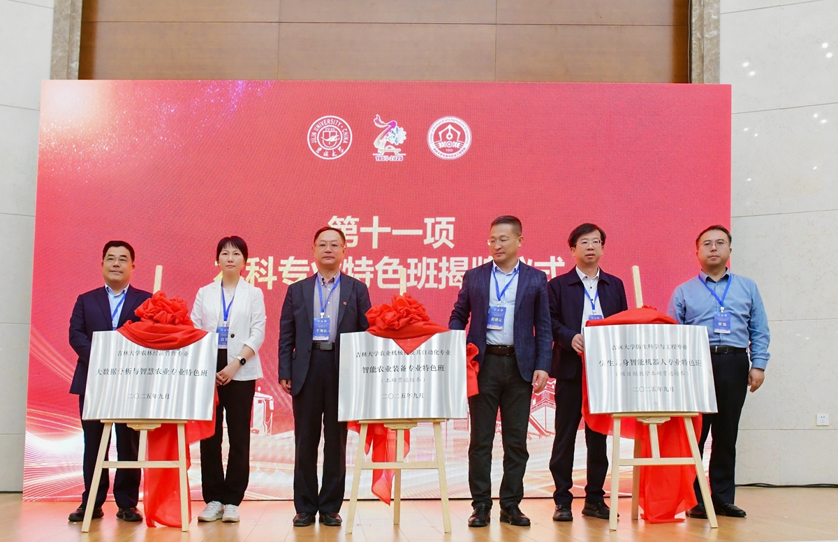 大会期间,还举行了农业机械化及其自动化专业智能农业装备特色班、仿生科学与工程专业具身智能机器人特色班、农林经济管理专业大数据分析与智慧农业特色班,以及吉林大学仿生未来技术学院揭牌仪式。