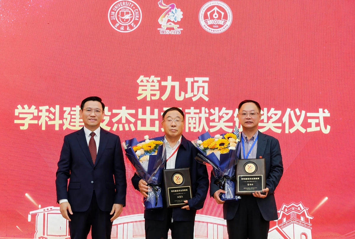 会上,田辉为任露泉教授、马成林教授(于海业老师代领)颁发“学科建设杰出贡献奖”。