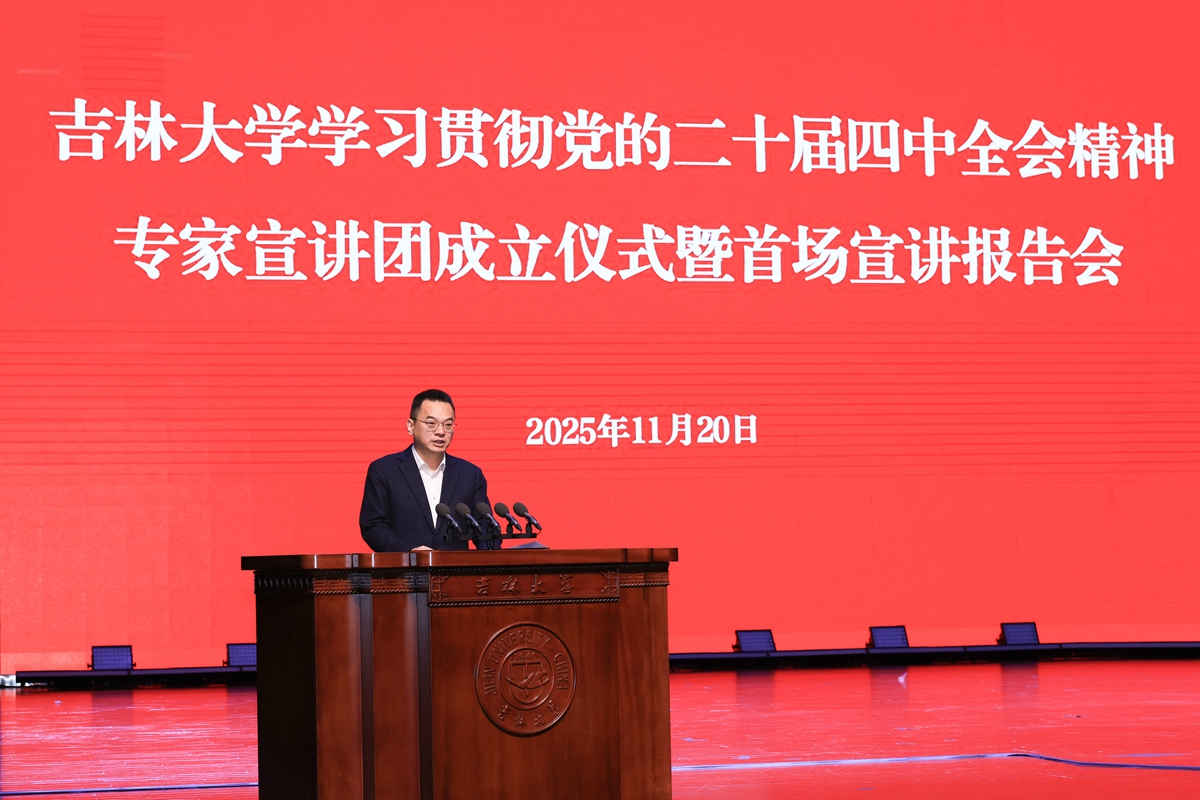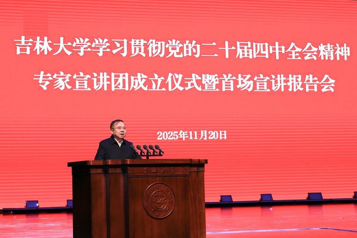 【文字/霍睿 图片/徐立华】11月20日上午,吉林大学学习贯彻党的二十届四中全会精神专家宣讲团成立仪式暨宣讲报告会在中心校区鼎新大讲堂举行。校党委书记、学习贯彻党的二十届四中全会精神专家宣讲团团长田辉以《深入学习贯彻党的二十届四中全会精神 奋力推动中国特色、世界一流大学建设开创新局面》为题作宣讲报告。